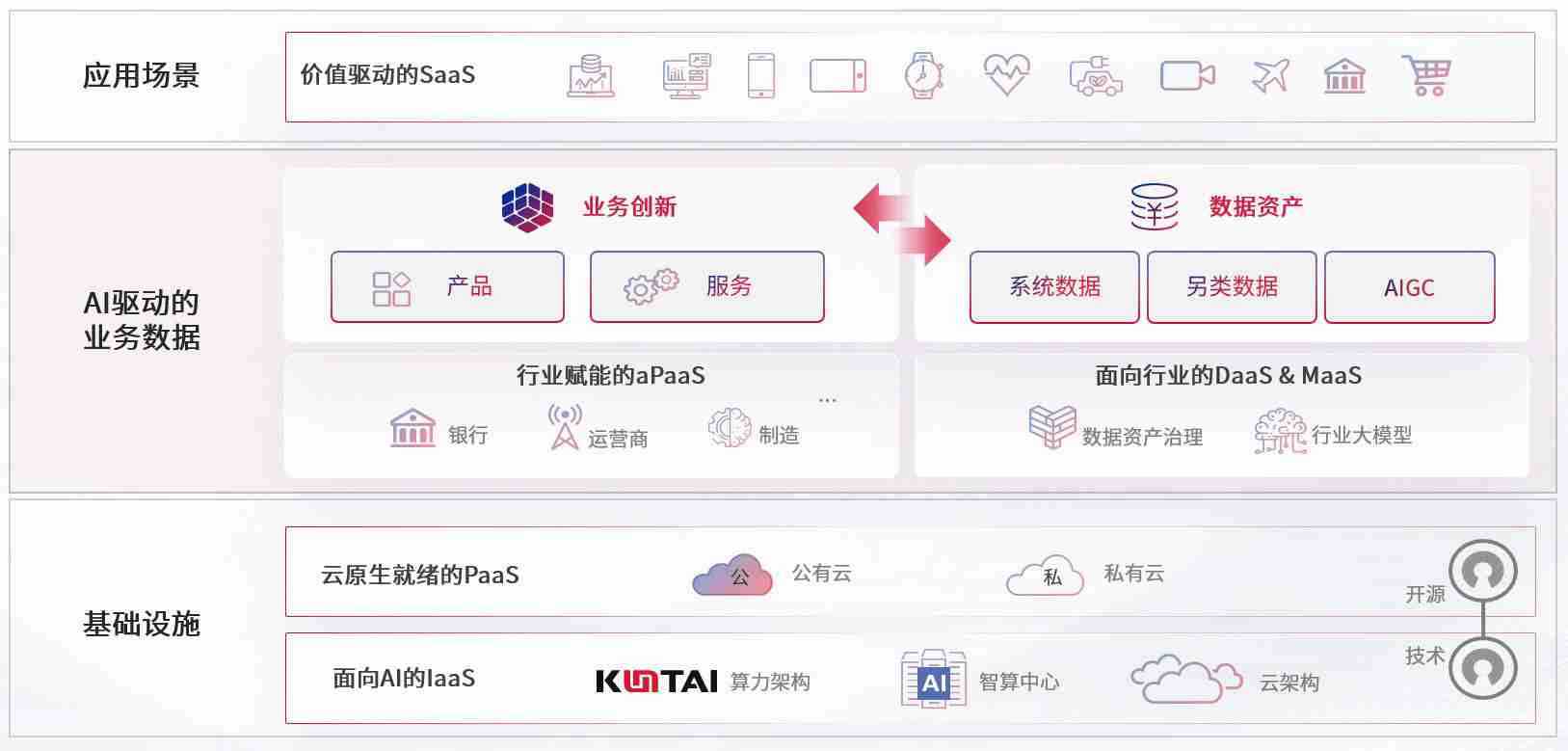 数字时代,,围绕企业数字化转型的关键要素,,,ABPAY钱包数码开创性的提出数云融合战略和技术体系框架,,,着力在云原生、、、、数字原生、、、AI原生和信创产业上架构产品和服务能力,,,,为处在不同数字化转型阶段的快消零售、、汽车、、、、金融、、、医疗、、、政企、、教育、、运营商等行业客户提供泛在的敏捷IT能力和融合的数据驱动能力,,构建跨界融合创新的数字业务场景和新业务模式,,助力企业级客户建立面向未来的核心能力和竞争优势,,,,全面推动社会的数字化、、智能化转型升级。。